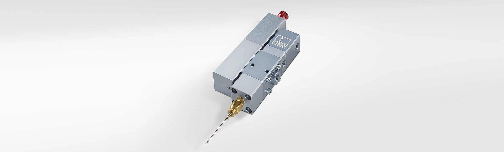 Las vávulas de dosificación de aguja se utilizan para la descarga de medios de viscosidad baja a alta. La válvula dosificadora se compone de dos partes separadas. Esta separación tiene la ventaja de que el material no se introduce en el cilindro de accionamiento y de que el movimiento de la aguja de la válvula puede disminuirse. La impermeabilización de la aguja de la válvula se realiza a través de una junta especial.