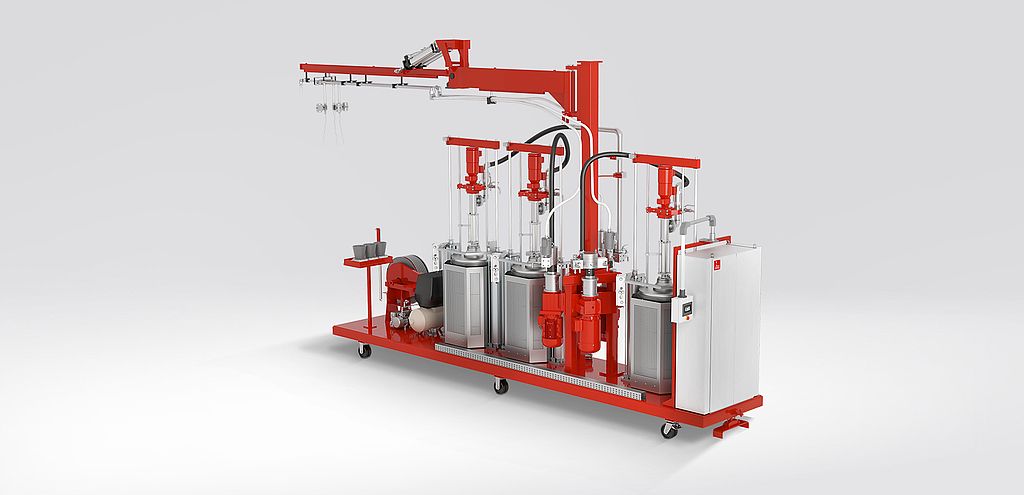 El sistema gluemix es un sistema de dosificación con bombas de engranajes de diseño compacto que operan sin disolventes. Se utiliza para procesar materiales multicomponente de viscosidad baja a alta a base de, p. ej. poliuretano y epoxy. El material se suministra por medio de depósitos a presión del producto o desde el bidón original.